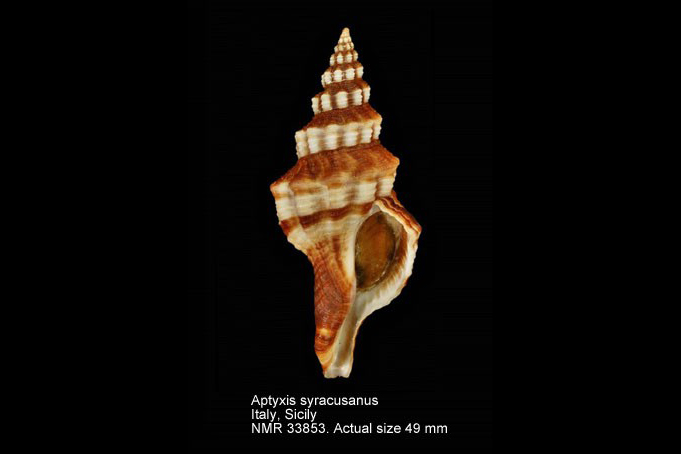 additional source Russo P. (2015). On the systematic position of Murex syracusanus Linnaeus, 1758 (Gastropoda, Fasciolariidae) with revaluation of the genus Aptyxis. Bollettino Malacologico. 51(2): 79-86. [details]
