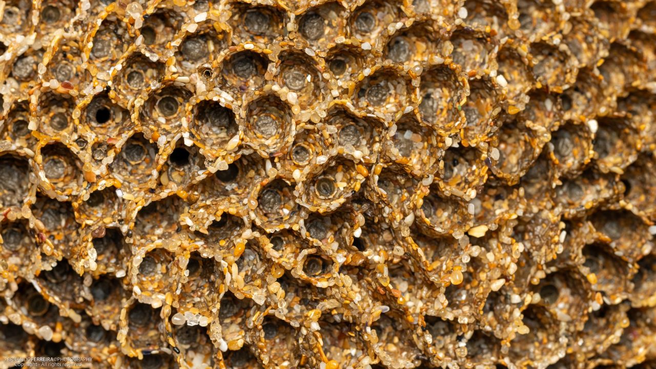 Constrói tubos de areia ou de fragmentos de conchas; esses tubos, densamente agregados, formam um padrão em favo de mel;